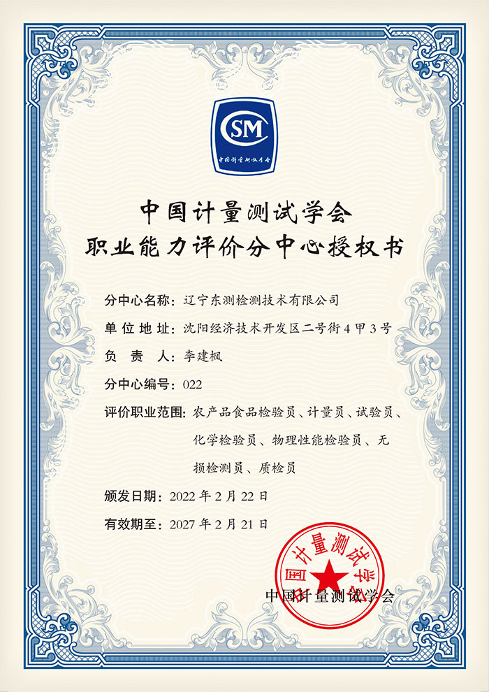 中國計(jì)量測試學(xué)會職業(yè)能力評價(jià)分中心授權(quán)書
