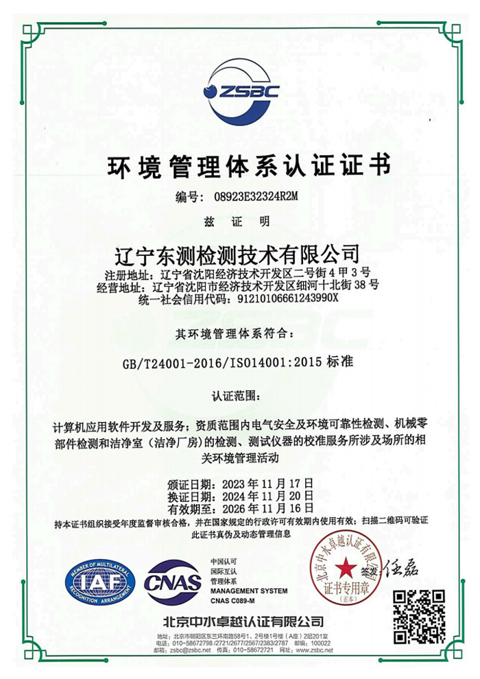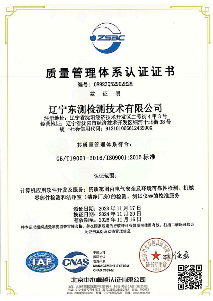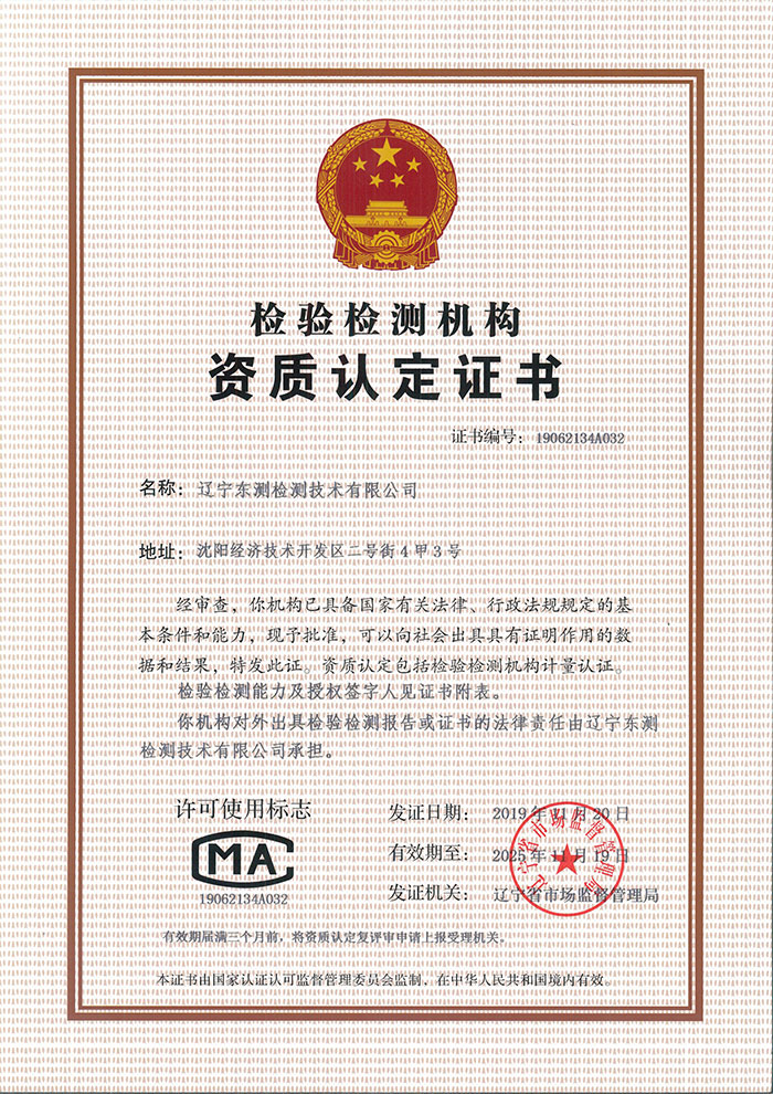 遼寧東測檢測技術(shù)有限公司成立于2007年6月21日,專注于為客戶提供計(jì)量、檢測以及技術(shù)咨詢與培訓(xùn)的第三方計(jì)量檢測機(jī)構(gòu)。遼寧東測檢測技術(shù)有限公司通過了中國合格評定國家認(rèn)可委員會認(rèn)可(CNAS),獲得檢驗(yàn)檢測機(jī)構(gòu)資質(zhì)認(rèn)定(CMA),憑借著高效的服務(wù)網(wǎng)絡(luò)、雄厚的技術(shù)實(shí)力以及全面的業(yè)務(wù)范圍,本著“科學(xué)、公正、準(zhǔn)確、真誠”的質(zhì)量方針,為社會提供優(yōu)質(zhì)計(jì)量檢測服務(wù),打造國內(nèi)具有價(jià)值的計(jì)量技術(shù)機(jī)構(gòu)。